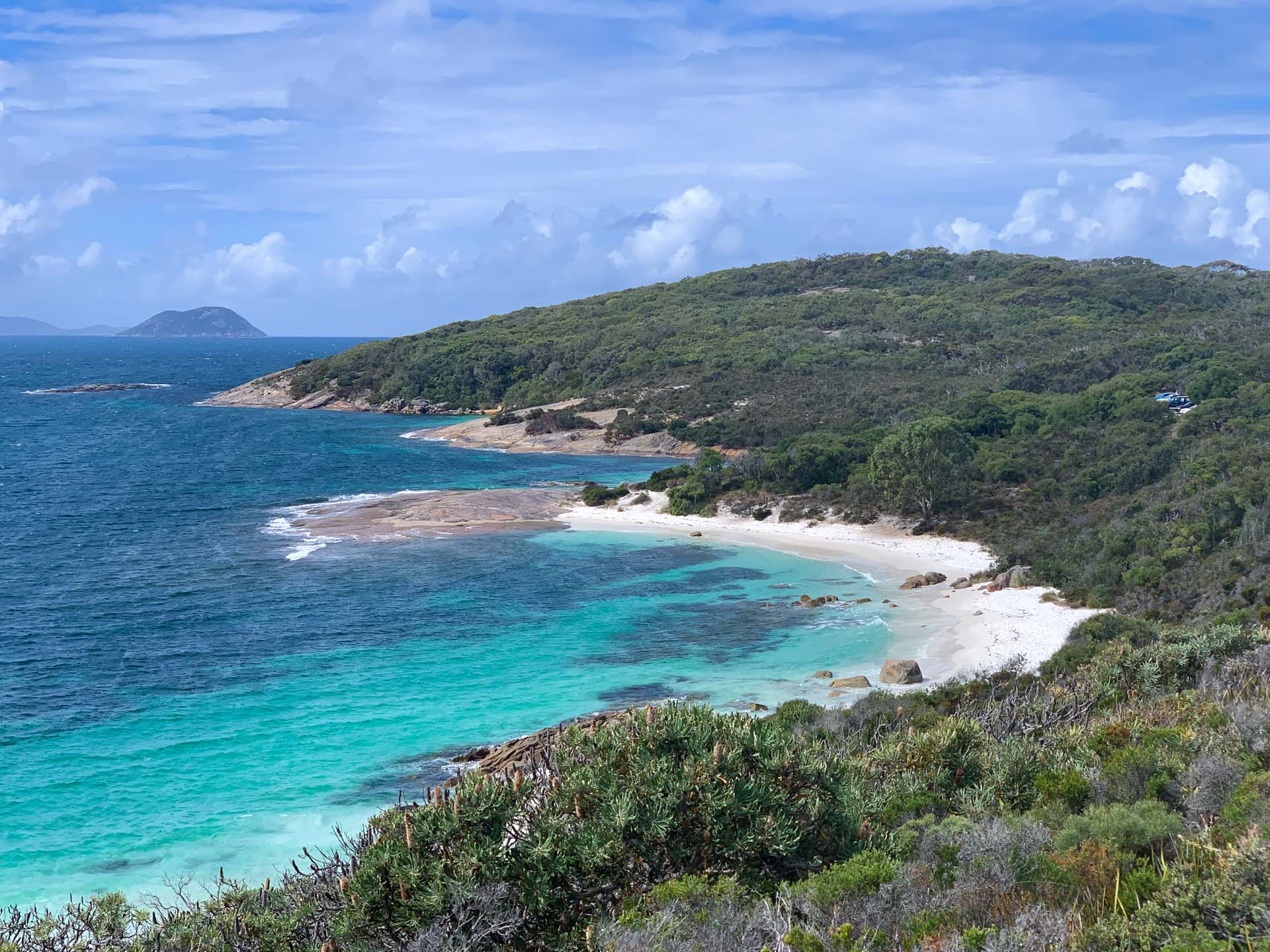The beaches in this area are breathtaking with their powdery white sand and lapping crystal waters. Whalers Cove is no exception and back at the car park I removed my shoes and walked down to the beach.