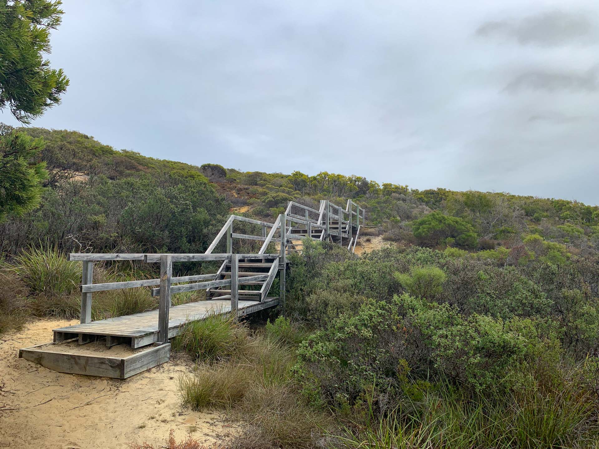 This is a grade 3 hike. Suited to most ages and fitness levels, there’s uneven terrain, rocks that get slippery when wet, some elevation including steps, and soft sand walking.